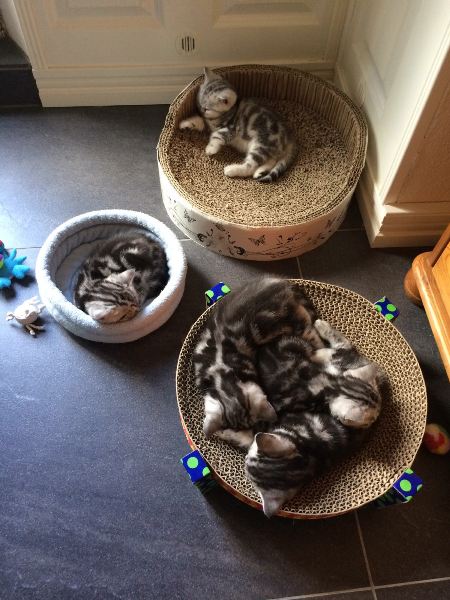 Toen we thuis kwamen leken de kittens wel een pond gegroeid! Hahaha onzin natuurlijk, maar je ziet dat geleidelijk groeien pas echt goed wanneer je ze een tijdje niet gezien hebt. We waren erg blij onze 12 schatten weer te zien en visa versa! Niemand deed beledigd of iets dergelijks. Het dagelijkse leven kon weer gewoon beginnen. Ron moest een paar dagen later meteen voor dik 1,5 week naar China voor zijn werk, dus voor mij een huis alleen met alle katten.