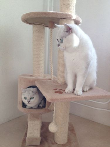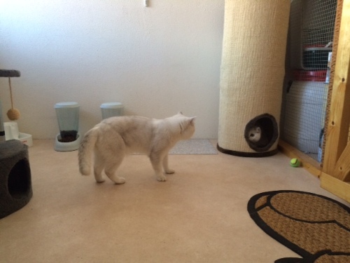 De volwassenen lopen gewoon regelmatig met ons mee naar de benedenverdieping, zeker de 3 jongens: Pappa Snoopy en zijn beide zonen Chako en Cisko. Anouk is graag boven want dan heeft ze rust en geen 'last' van de kittens. Lailah blijft ook het liefste boven. Bij onze slaapkamer is een fijn dakterras waarop zij regelmatig een frisse neus kunnen halen.