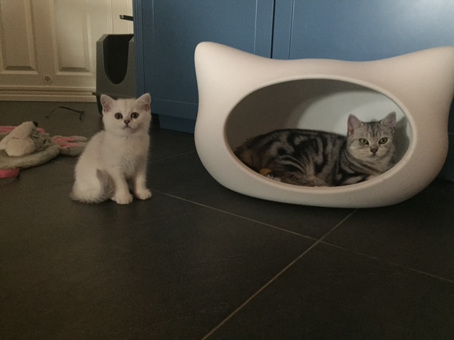 Het was dus wel een paar dagen wennen voor Harry in Diemen, zeker omdat daar ook nog eens de grote oude Brits Langhaar kater Bobby en de Brits Korthaar poes Robin wonen. Maar beiden waren erg lief en begripvol naar Harry en gaven hem de tijd en de ruimte langzaam aan alles te wennen. Natuurlijk waren daar verder Henny en Henk voor de broodnodige knuffels en lekkere hapjes en snoepjes. Inmiddels loopt ons kereltje al dapper door het hele huis en gaat het iedere dag weer een stukje beter met wennen!
