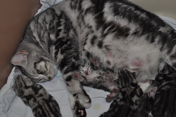 Iedere moederpoes is héél gelukkig en tevreden met haar baby's maar bij Lailah leek het er wel vanaf te spatten! Een waar genot om naar te kijken !!